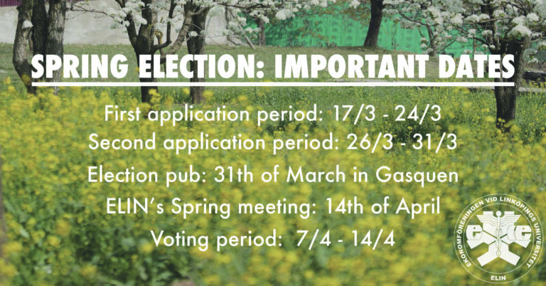 ELIN, Ekonomföreningen vid Linköpings Universitet är en ideell förening som startade 1971 och har idag drygt 1000 medlemmar, vilket gör oss till en av Linköpings största studentföreningar.